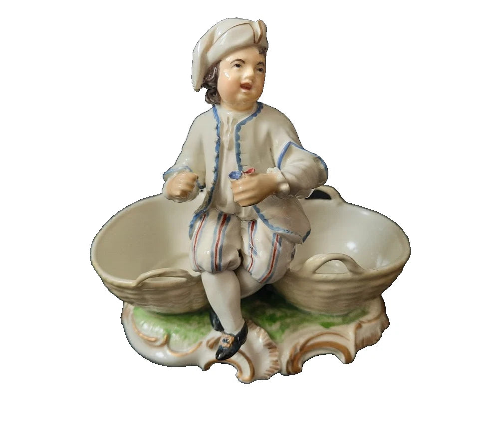 A Frankenthal Spice Dish with a Boy Holding Flowers, Has the Carl Theodor Marks and Inscribed marks to the Base.