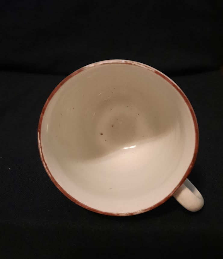 A Champions Bristol Coffee Cup Painted with Various Flowers with Brown Rim c1770. Has the x 7. Mark to the base. quite rare.