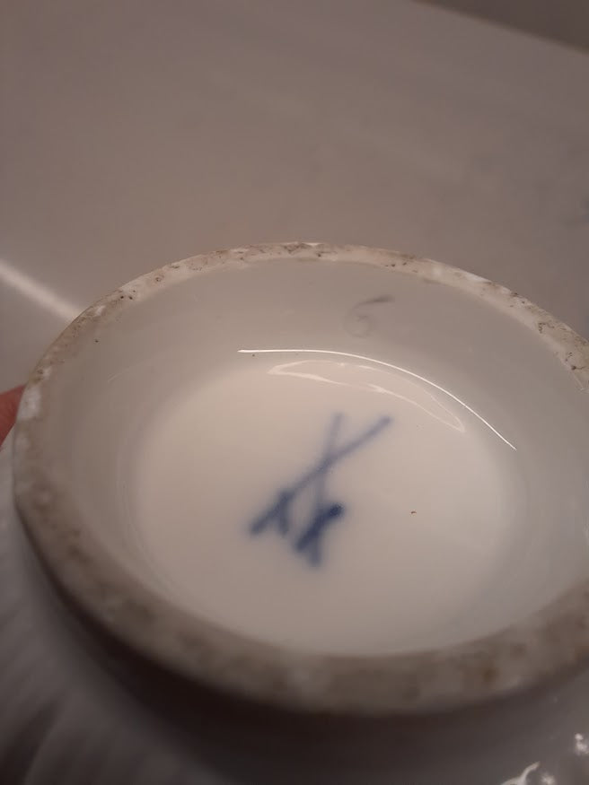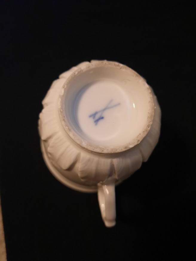An Extremely Rare Meissen Bottger Beaker and Saucer with Acanthus Leaves made around 1730. Has the Early Cross Swords and Drehers Marks