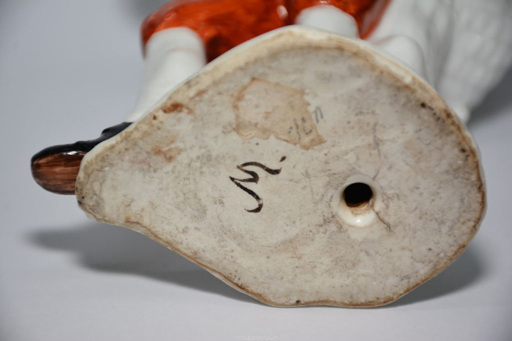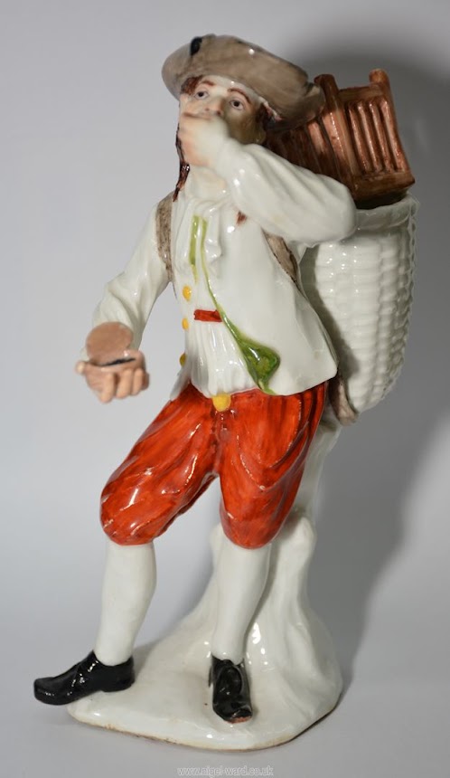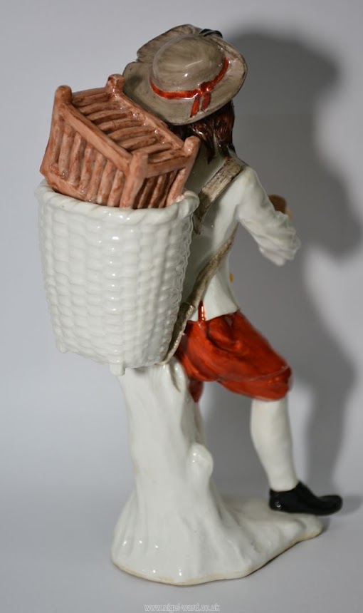 A Rare Figurine of a Peasant Taking Snuff Modelled by J.J. Kaendler from the "Cris de Paris" Series circa 1745. has the letter M to the base.