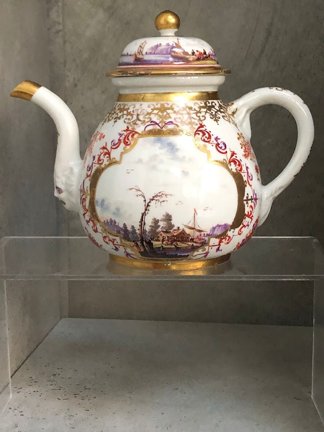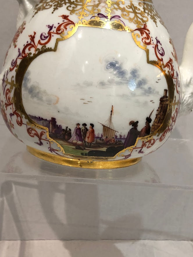 Meissen Porcelain Maskaron Teapot with Kauffahrtei Scenes 1730