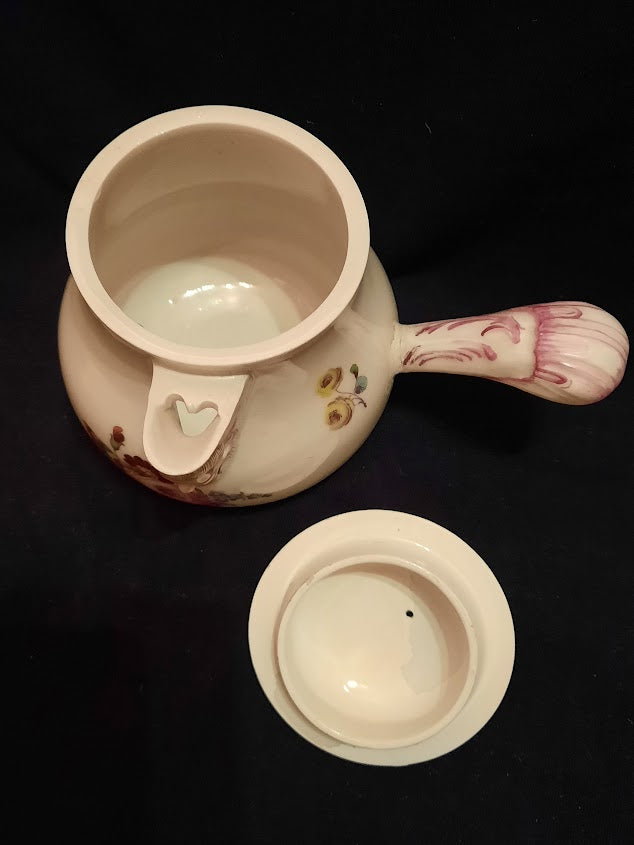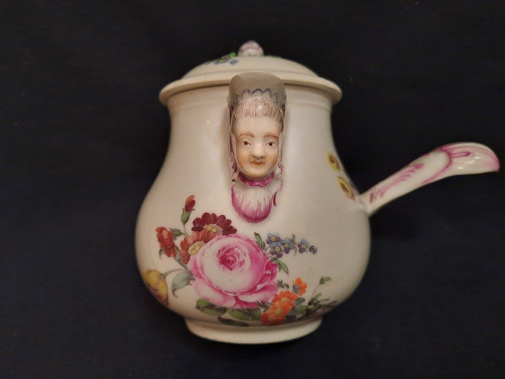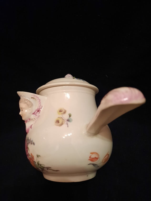 Ansbach Chocolate Pot with Various Flowers with masked spout that i love about Ansbach they often have these. Has the Factory A to the Base.. Circa 1760